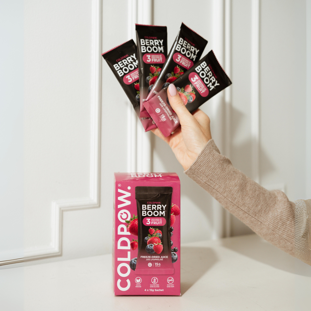 Fuel your day with BERRY BOOM a freeze dried powdered juice packed with antioxidants to combat free radicals, support wellness, and sustain your energy.