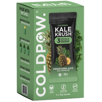Kickstart your day with KALE KRUSH a nutrient-packed freeze dried green juice delivering the equivalent of 3 servings of veggies and 1 serving of fruit in every scoop.